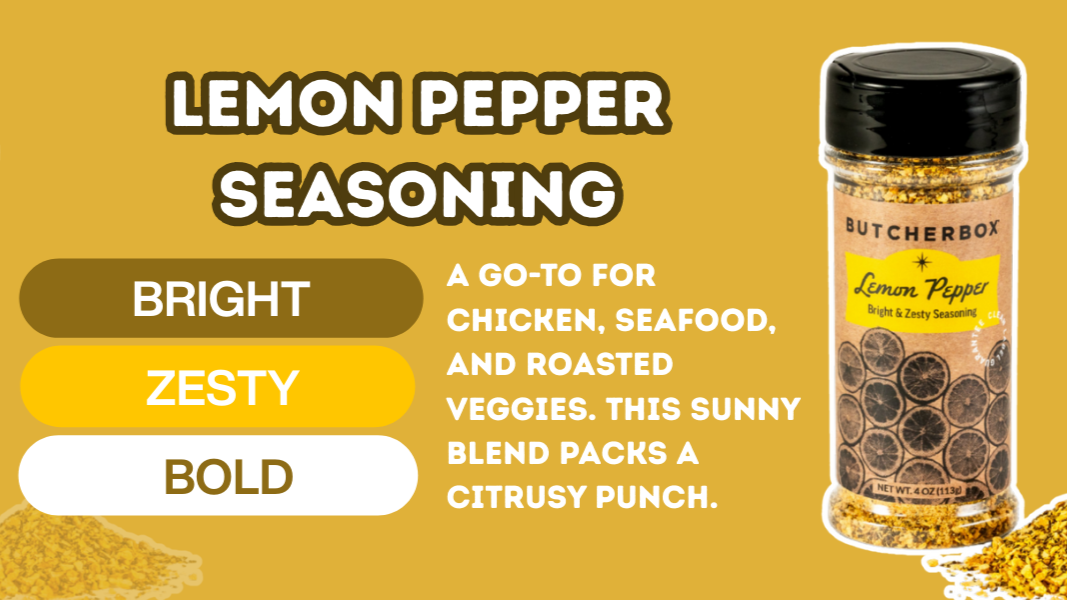 Lemon Pepper Seasoning Bright, zesty, and unapologetically delicious. Our Lemon Pepper Seasoning tastes like sunshine met a pepper mill and decided to upgrade dinner. We balance real lemony tang with a clean, peppery snap and just enough savory backbone to...